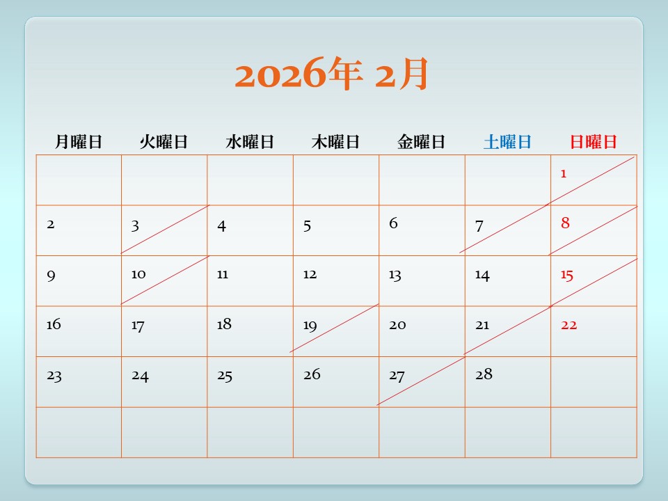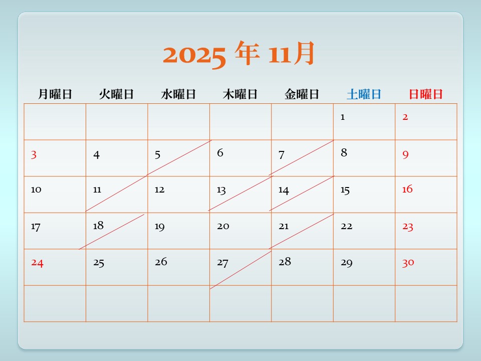 下記予定表 斜線は、休日 予約